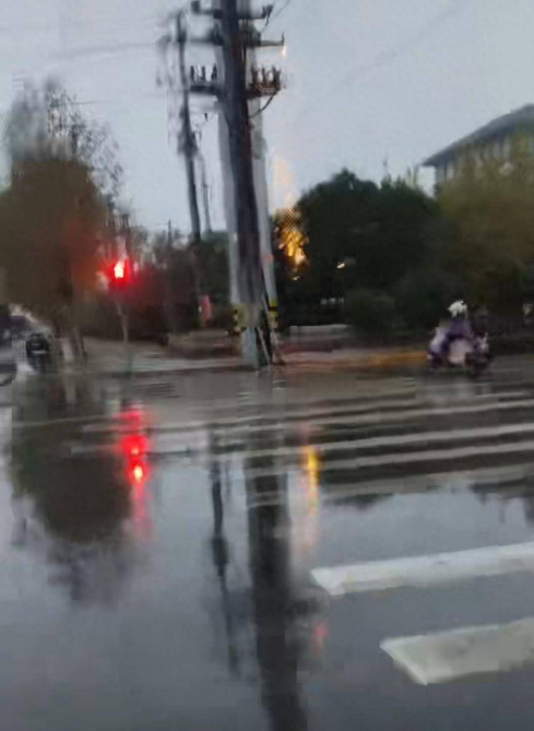 电线起火断裂坠落,有人骑电动车经过时被砸(来源网络)